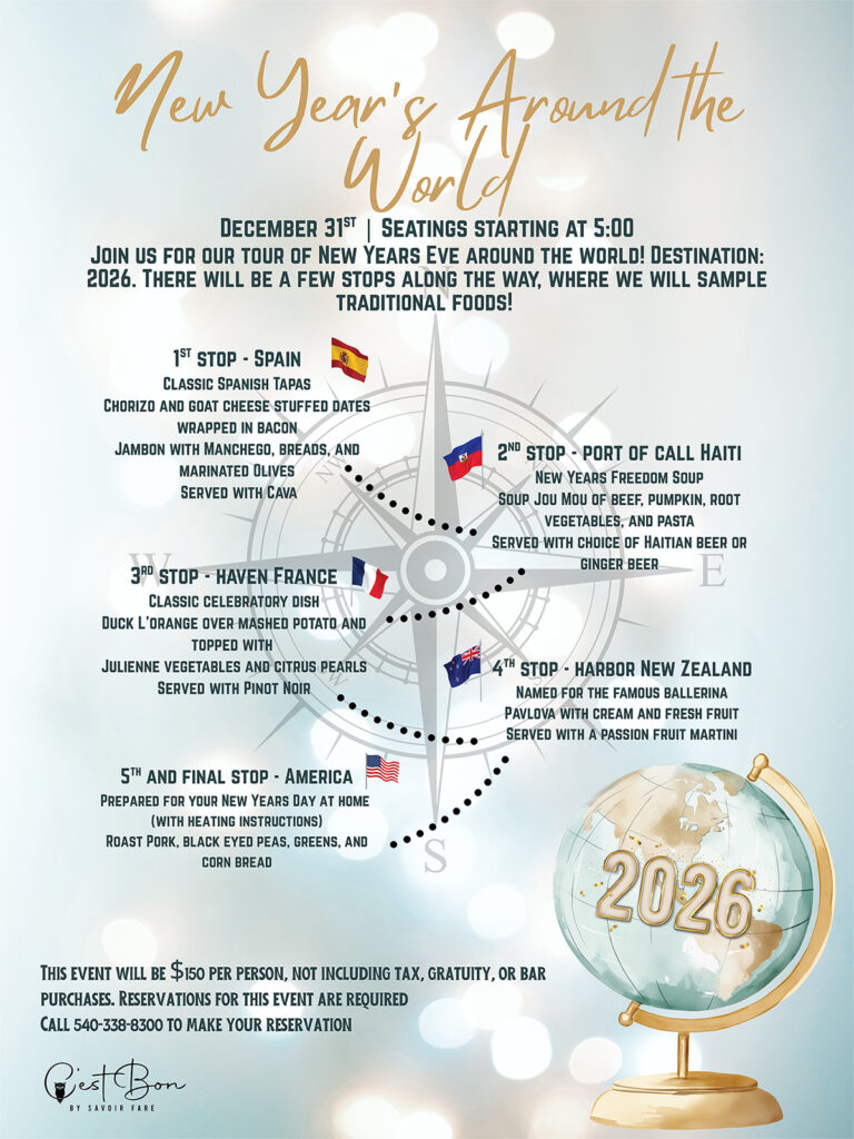 • Reservations Required: To reserve your seat for this special New Year’s Eve event, call 540-338-8300.